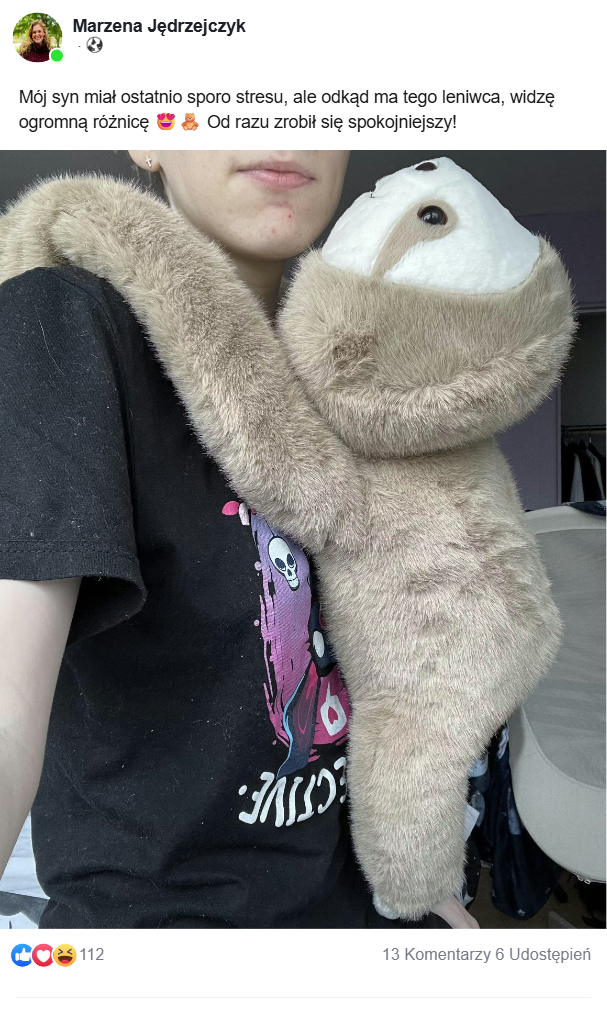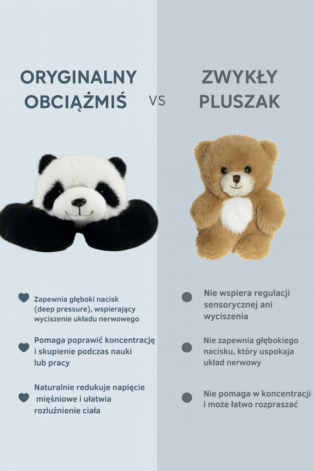 Dzięki odpowiedniemu obciążeniu ⚖️ i otuleniu ramionami 🤗 ObciążMiś daje poczucie bezpieczeństwa, stabilizuje ciało oraz wspiera regulację sensoryczną zarówno u dzieci, jak i dorosłych 👶🧩🧑🦱.