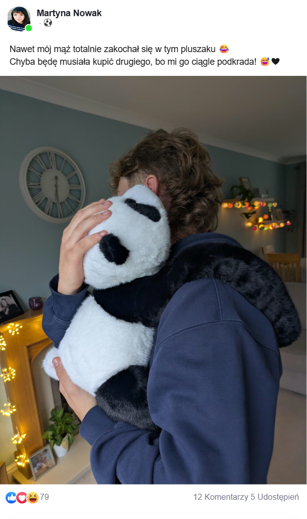 🐾 długie, miękkie łapki, które naprawdę obejmują ramiona,
